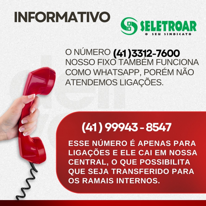 Celular ligação normal – 41 999438547 (este numero cai em nossa central o que possibilita que a recepcionista encaminhe as ligações para os ramais internos)